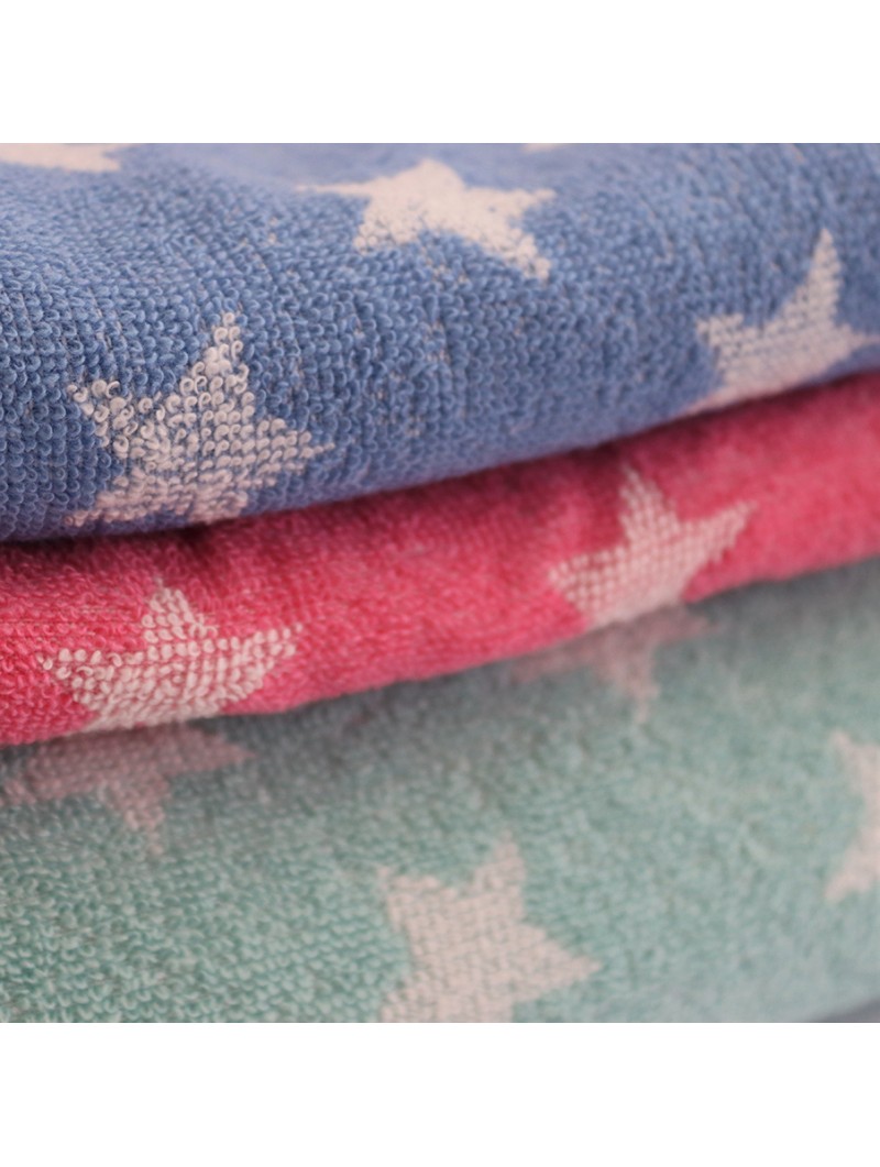 Toalha de rosto com estrelas. Composta por 100% algodão. 450 g/m² e fio singelo.