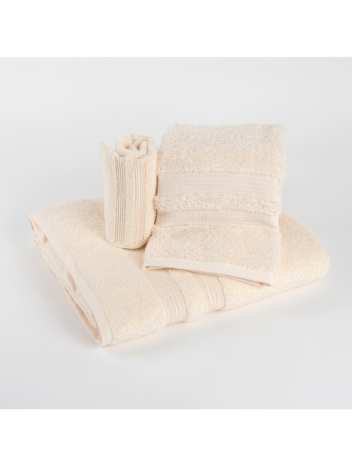 Toalhete com rebordo duplo. Composto por 100% algodão, 600 g/m² e fio singelo.